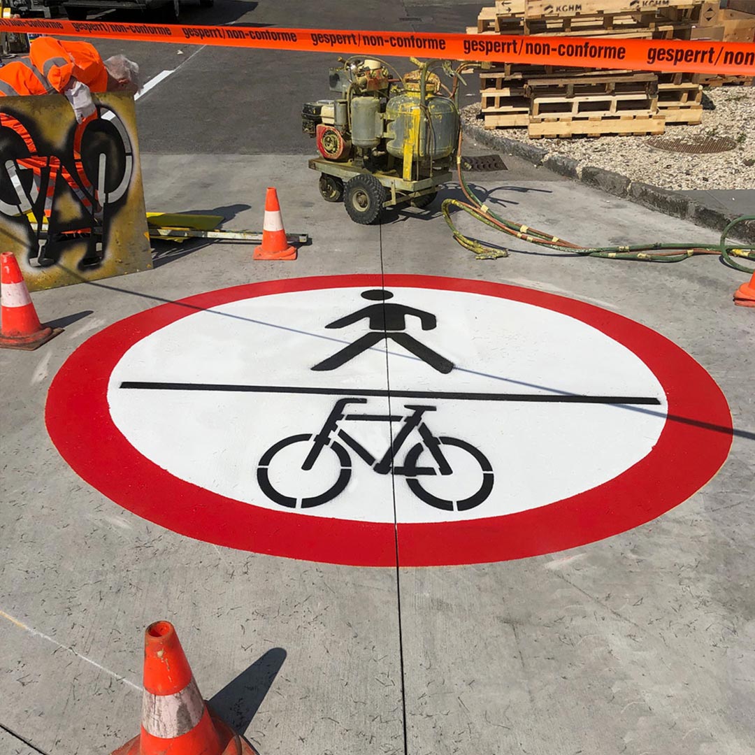 - Werbung in Fussgängerzonen: Platzieren Sie Bodenmarkierungen in belebten Fussgängerzonen, um Ihre Werbung direkt vor den Füssen der Passanten zu positionieren.